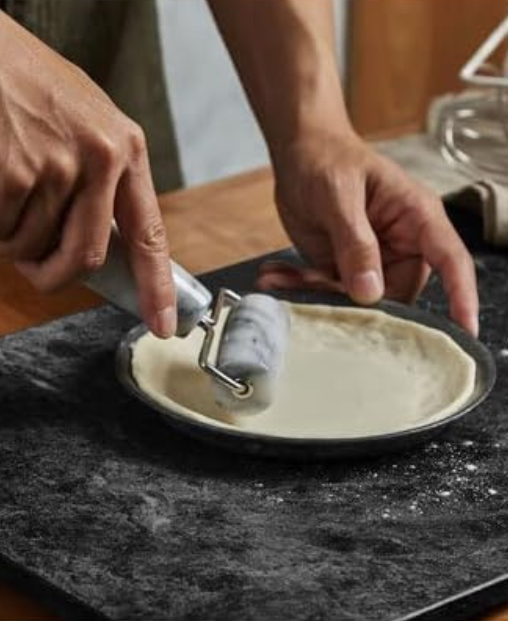 Control and consistency come together in this Marble Double Pastry Roller, designed for precise dough work in everyday baking. Featuring two solid marble rollers set on a durable stainless-steel frame, it delivers even pressure while the naturally cool stone surface helps reduce sticking. Ideal for pies, pizzas, cookies, and pastries, this tool allows for smooth rolling in tight spaces or targeted areas.