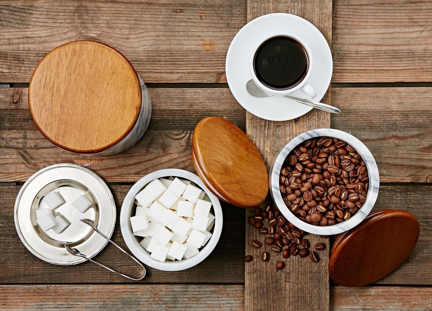 • Smooth wooden lid with airtight seal to preserve freshness