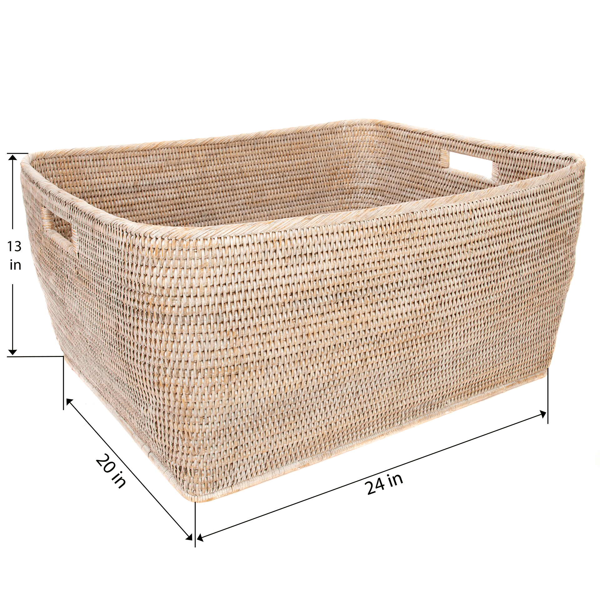 Rattan Family Basket with Cutout Handles