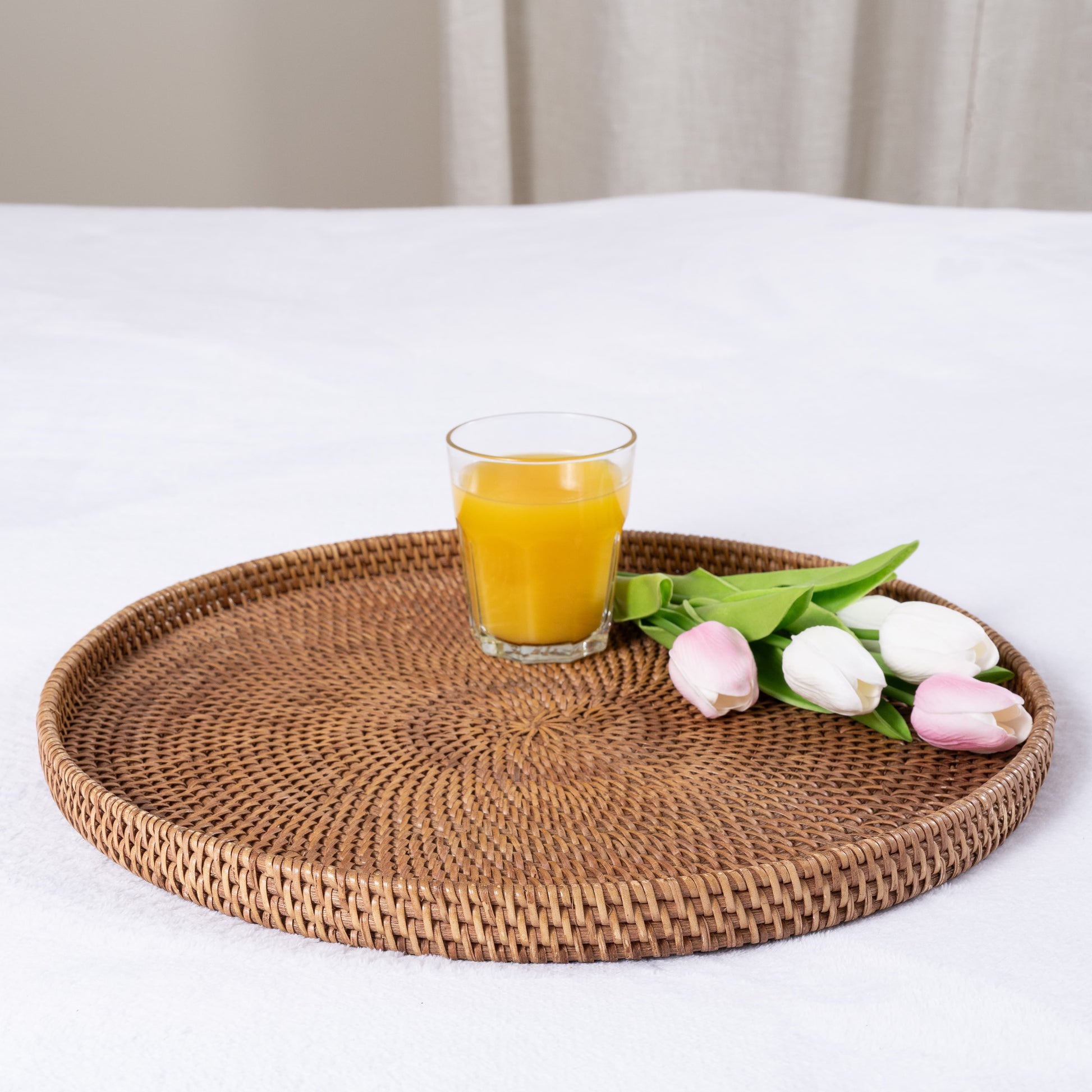 Rattan Round Flat Tray