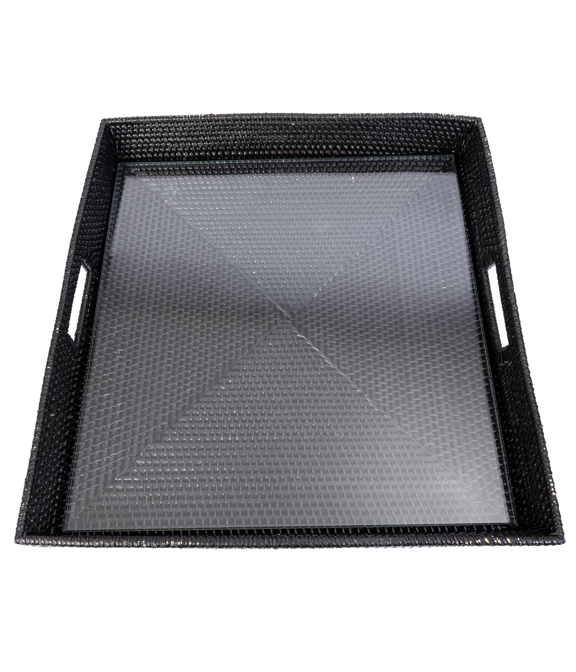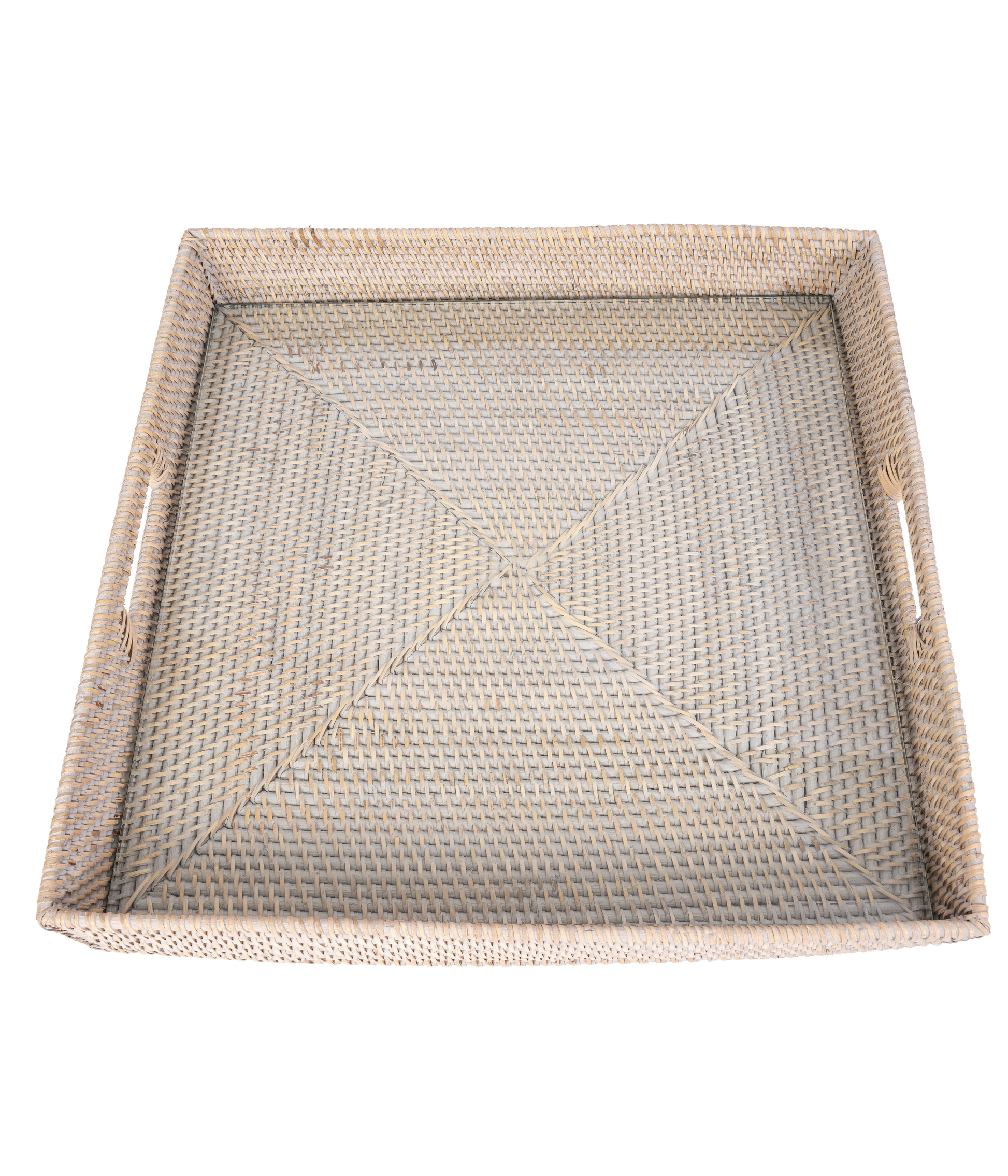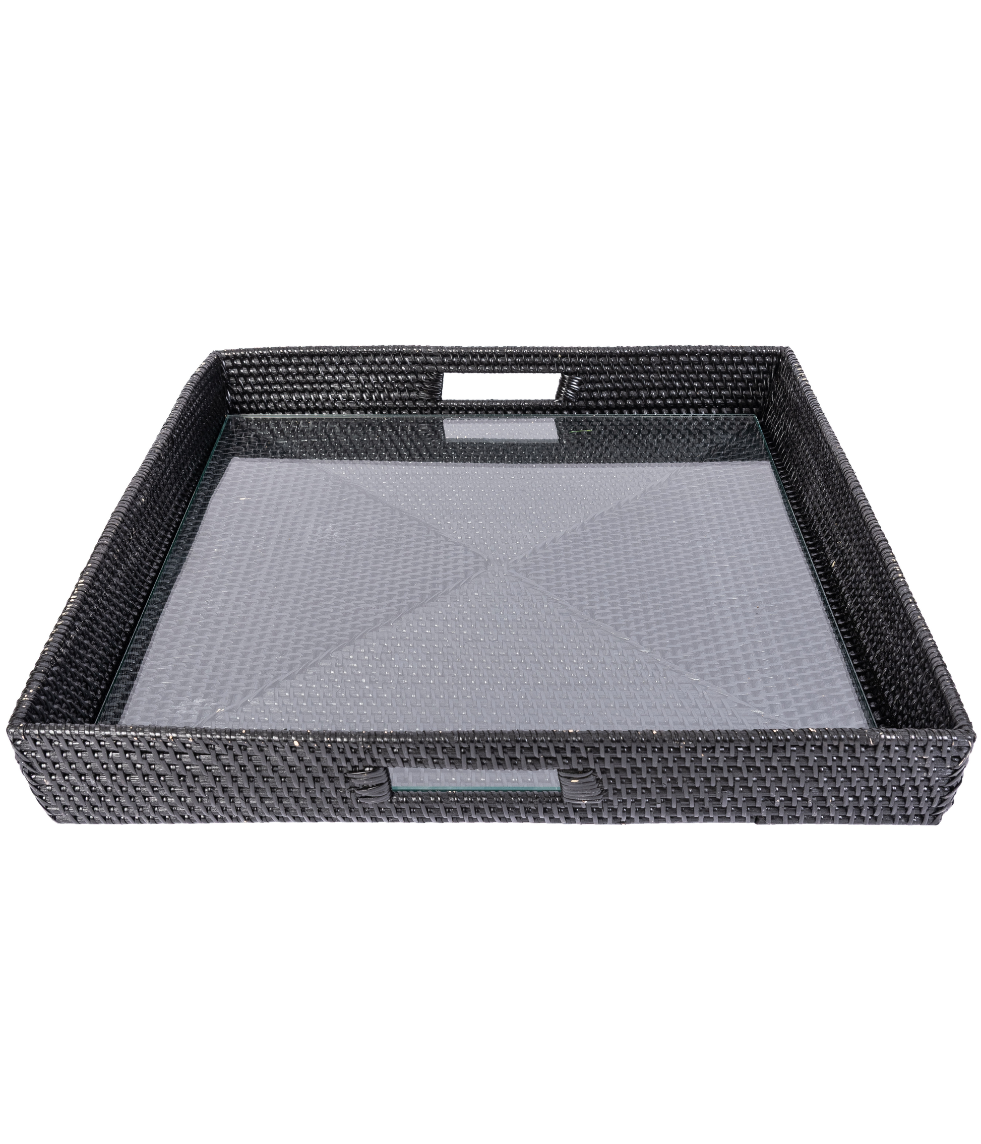 Rattan Square Serving Tray with Glass Insert